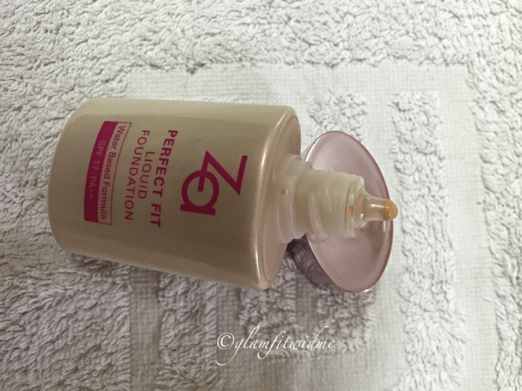 The Za perfect fit liquid foundation, comes in pretty plastic bottle with metallic silverishhh pink cap. The quantity is 30ml and costs 700 INR (in India). It comes with a nozzle which makes sure it doesn’t spill out too much, while squeezing.