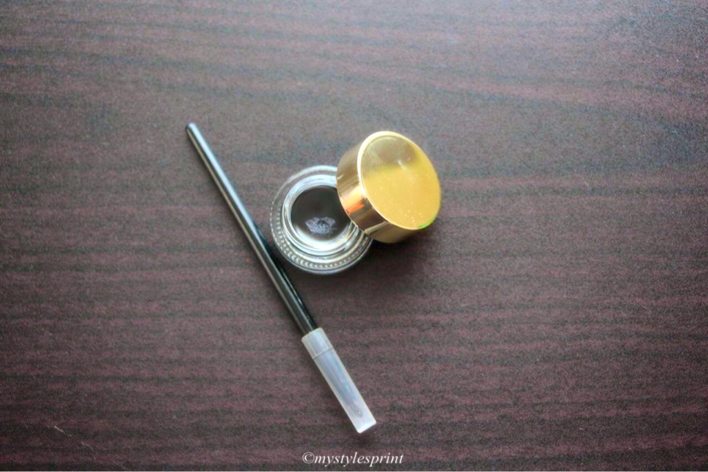 It comes in a sleek black box with matte covering with a tint of gold in alphabets. Inside the box is glass pot containing the product with golden cap and yes it comes with a applicating brush as well. You can find this eyeliner in other colors as well like brown, eggplant. It is priced 875INR in India and for 10$ in USA for 2.8gm.